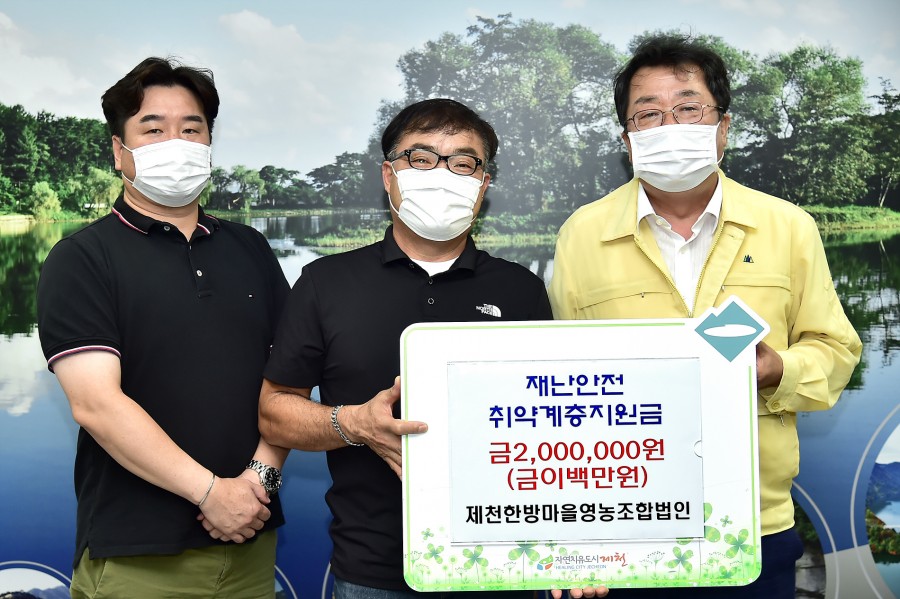 같은 날 제천한방마을영농조합법인(대표 권처현)도 지원금 2백만 원을 이상천 제천시장에게 전달했다.