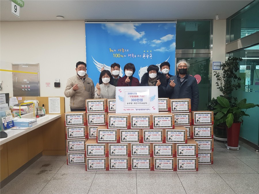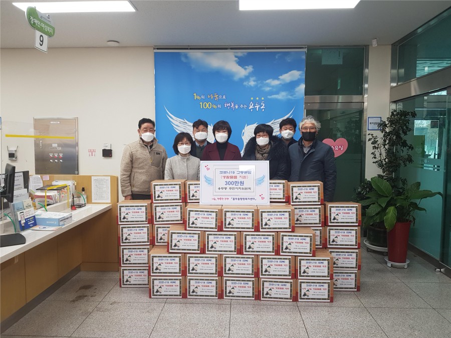 제천시 용두동주민자치위원회(위원장 김연희)는 23일 용두동행정복지 센터를 방문해 사랑 나눔 생활물품 세트(식료품 및 생활방역물품) 50박스(300만원)를 기탁하였다.